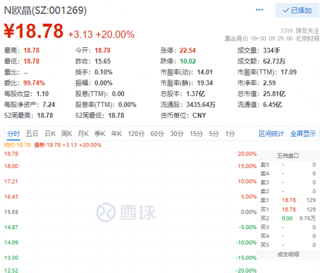 9月30日,石英坩堝第一股歐晶科技(SZ:001269)正式登陸深交所!公司股票發(fā)行價格為15.65元/股,發(fā)行市盈率為17.03倍。截至今早開盤,公司股價報18.78元/股,漲幅為20%,總市值達到25.81億元。