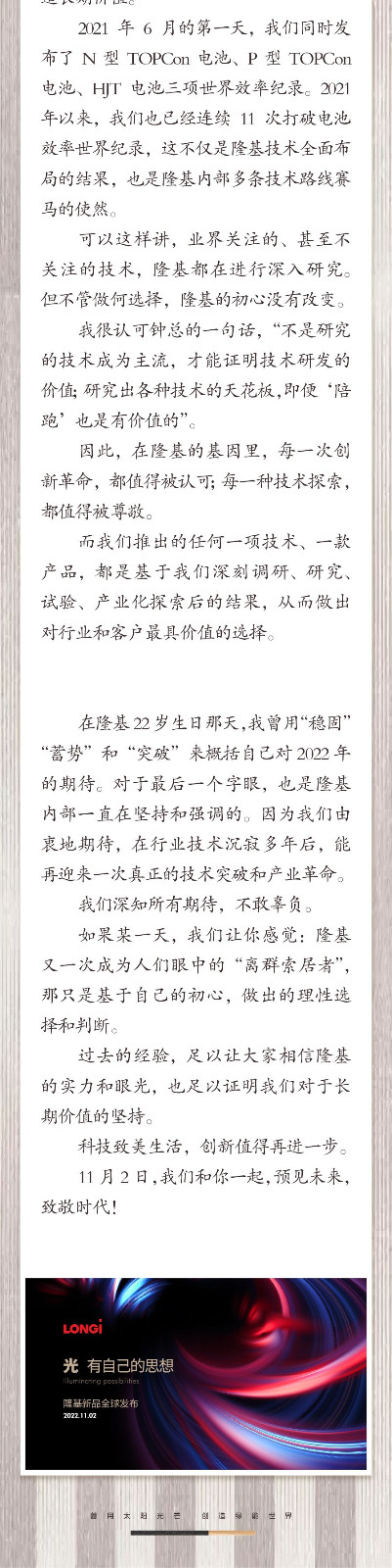 李振國總裁公開信丨隆基的初心