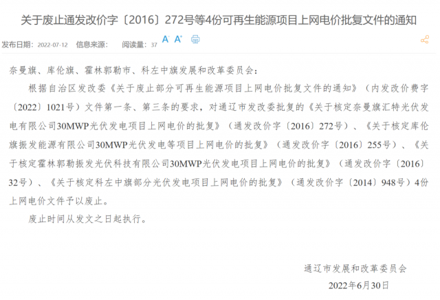 此前,太極實(shí)業(yè)(600667)8月4日晚間公告,公司關(guān)注到內(nèi)蒙古發(fā)改委官網(wǎng)刊登的《關(guān)于廢止部分可再生能源項(xiàng)目上網(wǎng)電價(jià)批復(fù)文件的通知》,涉及子公司五個(gè)集中式光伏電站;所涉電站將不再享受電費(fèi)補(bǔ)貼,公司將對(duì)所涉電站評(píng)估后計(jì)提固定資產(chǎn)減值準(zhǔn)備,初步測(cè)算固定資產(chǎn)減值金額為3.28億元左右。該項(xiàng)固定資產(chǎn)減值預(yù)計(jì)將減少公司2022年上半年凈利潤(rùn)3.28億元左右,占最近一期經(jīng)審計(jì)凈利潤(rùn)的36.12%。同時(shí),本次電價(jià)批復(fù)廢止將導(dǎo)致所涉電站電價(jià)補(bǔ)貼被取消,經(jīng)初步測(cè)算,預(yù)計(jì)減少公司2022年下半年光伏發(fā)電業(yè)務(wù)收入4906萬(wàn)元左右,減少公司2022年下半年凈利潤(rùn)4170萬(wàn)元左右。