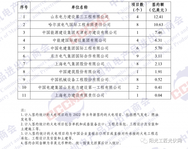 2022年中國企業(yè)境外火電項(xiàng)目簽約額排名