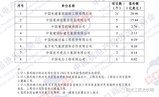 2022年中國企業(yè)境外水電項(xiàng)目簽約額排名