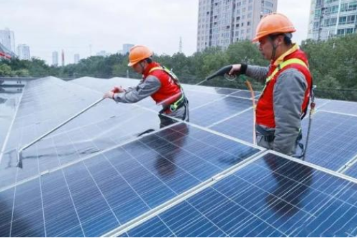 據(jù)悉,該市安裝光伏的12家企業(yè)多數(shù)為紡織業(yè)及印刷軟包裝業(yè),園區(qū)中的粉塵、棉絮等漂浮物會(huì)不同程度地粘附在光伏組件的面板上,影響設(shè)備安全穩(wěn)定的運(yùn)行,導(dǎo)致組件接收到的太陽(yáng)輻射能量降低,進(jìn)而使得設(shè)備發(fā)電效率低下。“光伏組件是光伏發(fā)電系統(tǒng)的重要組成部分,太陽(yáng)能通過(guò)它轉(zhuǎn)化為電能進(jìn)行發(fā)電。表面附著的灰塵不僅影響光伏板的發(fā)電量,嚴(yán)重時(shí)還可能導(dǎo)致熱斑效應(yīng),使光伏板組件壽命減短乃至損壞。”在清洗廠房屋頂光伏板時(shí),該公司紅船共產(chǎn)黨員服務(wù)隊(duì)不忘為企業(yè)科普光伏面板發(fā)電原理以及日常維護(hù)注意事項(xiàng)。