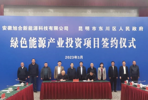 2023年3月3日,昆明市東川區(qū)人民政府與旭合科技在昆明會堂舉行綠色能源產(chǎn)業(yè)投資項目簽約儀式,在昆明市東川區(qū)投資建設(shè)5GW高效光伏組件、5GW電池及4GWh儲能電池項目,投產(chǎn)建設(shè)后,預(yù)計年產(chǎn)值超百億元。昆明市人民政府、市投資促進(jìn)局、東川區(qū)委、區(qū)政府,昆明高速公路公司相關(guān)領(lǐng)導(dǎo),旭合科技董事長鄭旭、副董事長崔海峰、CEO李質(zhì)磊共同出席了簽約儀式。