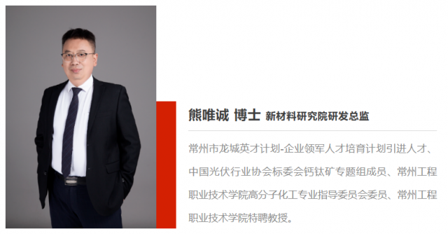 熊唯誠(chéng)博士不僅在企業(yè)內(nèi)部發(fā)揮帶頭引領(lǐng)作用,還積極參加行業(yè)科研交流,推進(jìn)行業(yè)技術(shù)進(jìn)步。他受邀加入全國(guó)首個(gè)鈣鈦礦領(lǐng)域標(biāo)準(zhǔn)工作專題組,與專題組優(yōu)秀同仁攜手推動(dòng)鈣鈦礦光伏電池標(biāo)準(zhǔn)化制定,助力鈣鈦礦技術(shù)與產(chǎn)業(yè)化發(fā)展。其主持研發(fā)的相關(guān)課題產(chǎn)品分別獲得“江蘇省高新技術(shù)產(chǎn)品”和“常州市高新技術(shù)產(chǎn)品”,為光伏領(lǐng)域技術(shù)變革、降本增效貢獻(xiàn)一份力量。