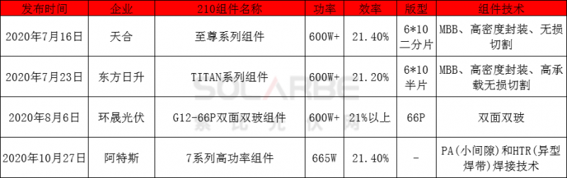 回顧2020年,天合、東方日升、環(huán)晟光伏、阿特斯先后發(fā)布了搭載210尺寸硅片的超高功率組件。2020年3月份,東方日升斬獲全球首個210尺寸500W組件訂單,成功打進歐洲市場,并打響了210組件訂單的第一槍。截止2020年第三季度,天合210組件簽單1GW,2021年1月8日,天合與美國公司NEXTERA ENERGY(新時代能源)再簽4GW的210組件長單。