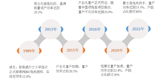 圖 1 PERC電池主要發(fā)展歷程