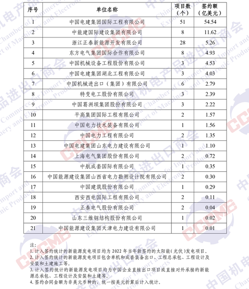 2022年中國企業(yè)境外太陽能(光伏)項(xiàng)目簽約額排名