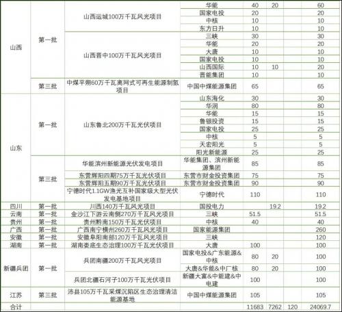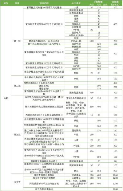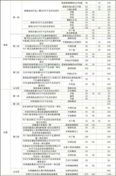 隨著相關(guān)各類信息的不斷披露,各個(gè)風(fēng)光大基地項(xiàng)目的業(yè)主單位也逐漸明確。
