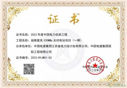 中國電力優(yōu)質(zhì)工程代表我國電力行業(yè)最高工程質(zhì)量水平,獲此榮譽(yù)彰顯了越南富美項(xiàng)目設(shè)計(jì)優(yōu)秀、管理科學(xué)、質(zhì)量上乘、技術(shù)領(lǐng)先、節(jié)能環(huán)保、工藝精湛,綜合指標(biāo)達(dá)到國內(nèi)同期、同類先進(jìn)水平。