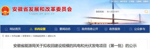 安徽省能源局關(guān)于擬收回建設(shè)規(guī)模的風(fēng)電和光伏發(fā)電項目(第一批)的公示