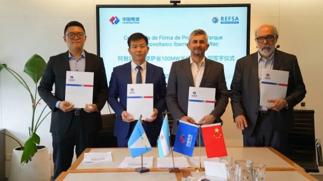 近日,在布宜諾斯艾利斯市電建阿根廷分公司辦公室,中國電建股份公司與上海電建聯(lián)合體同阿根廷福爾摩薩省資源與能源公司總裁丹尼爾·馬科斯·馬里奇和省經(jīng)濟部部長豪爾赫·奧斯卡·伊巴尼茲,共同簽署了IBARRETA 100MW光伏項目EPC合同。