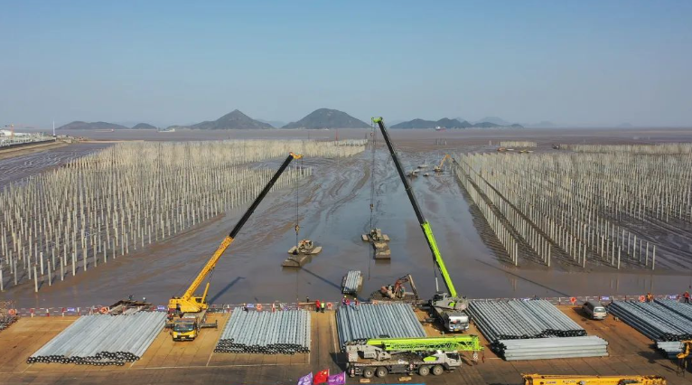 房海達(dá)表示:“我們每天打樁的數(shù)量是四至五百根,等到大潮的時候我們會加快速度,爭取在5月份把所有的樁全部打完,至六七月份,組件安裝率達(dá)80%至90%。”