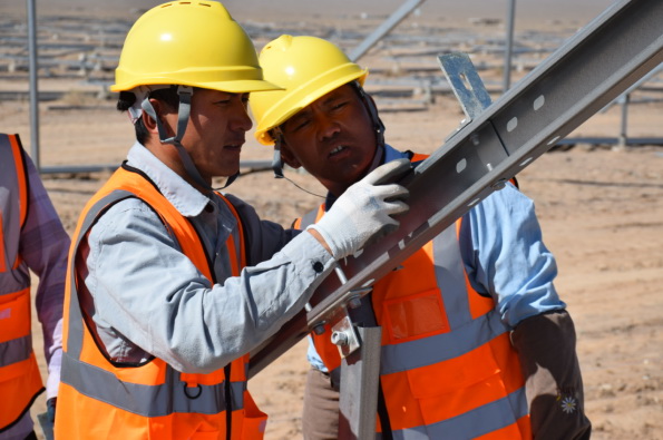 在樁基施工過程中,克服作業(yè)面環(huán)境惡劣、氣溫高紫外線強、常伴有沙塵暴等因素,以每日、每周為節(jié)點嚴格落實施工部署,優(yōu)化工序施工方案,采取測量放點精準定位,樁位中心清晰標識,樁機安裝水平尺,專人盯控預埋件,有效避免樁位、樁身垂直度、樁長、樁頂標高、預埋件定位等工序風險點出現(xiàn),5月27日優(yōu)質(zhì)完成樁基混凝土澆筑,為項目安全快速推進奠定了堅實的基礎(chǔ)。8月12日,玉門40萬千瓦光伏發(fā)電工程項目首批次光伏板順利安裝,項目正式進入電氣安裝階段,同時開啟了建設(shè)目標“加速度”。10月30日項目提前40天順利完工。