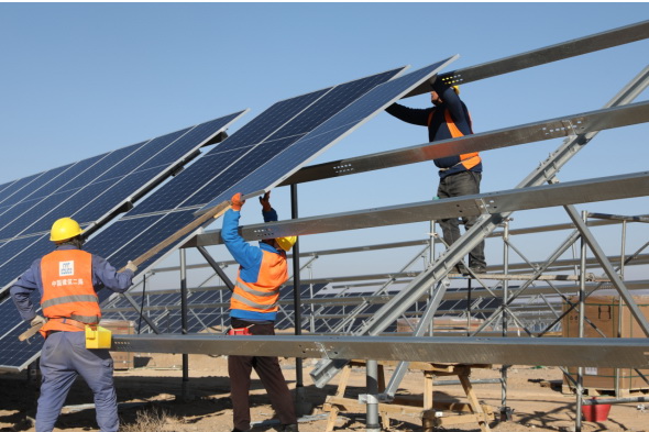一望無垠的荒漠戈壁里,光伏藍海在陽光下熠熠生輝,與光熱儲能板塊、風電板塊遙相呼應,“建”證著建設(shè)者在“沙戈荒”上追“光”逐“日”。中建二局將始終聚焦國家發(fā)展戰(zhàn)略,以實際行動為綠色中國貢獻更多力量。(麻倩、劉慶安)