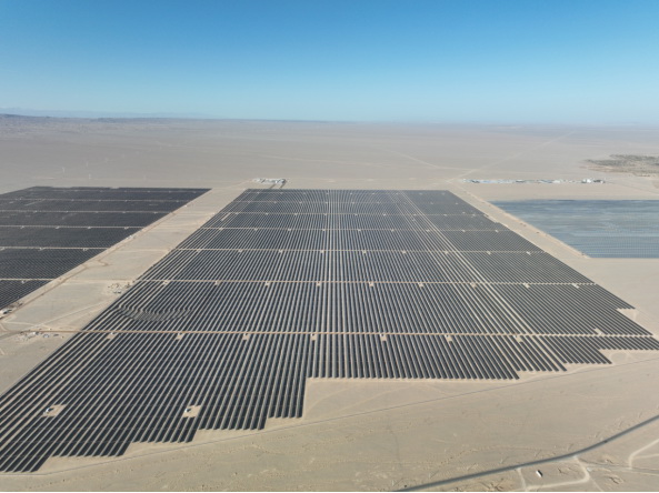 本網(wǎng)訊 秋日玉門,藍光熠熠。10月30日,隨著最后一塊光伏板組裝完成,中建二局承建的玉門“光熱儲能+光伏+風電”示范項目40萬千瓦光伏發(fā)電工程正式完工,較計劃工期提前40天,為項目并網(wǎng)發(fā)電奠定了堅實基礎(chǔ)。
