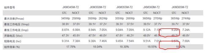 實(shí)際上,要理解這些并不難,較之常規(guī)多晶單晶組件,雙面組件的峰值功率電流及短路電流都有很大提升。為證明這一結(jié)論,我們不妨截取代表性組件企業(yè)主流功率段單晶組件(60片)的性能參數(shù)來看: