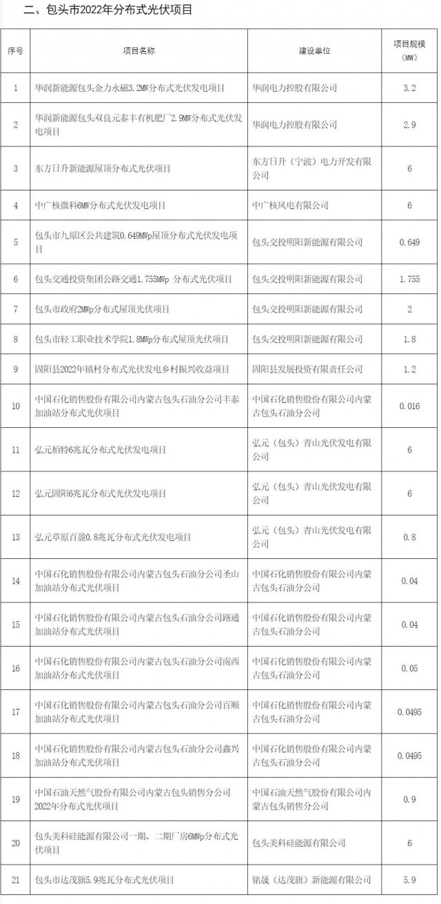 1月10日,內(nèi)蒙古包頭2022年分散式風電、分布式光伏發(fā)電項目競爭性配置優(yōu)選結(jié)果的公示。