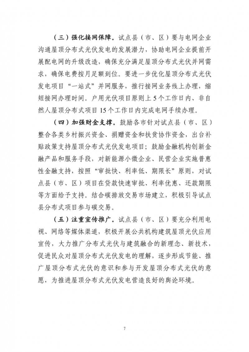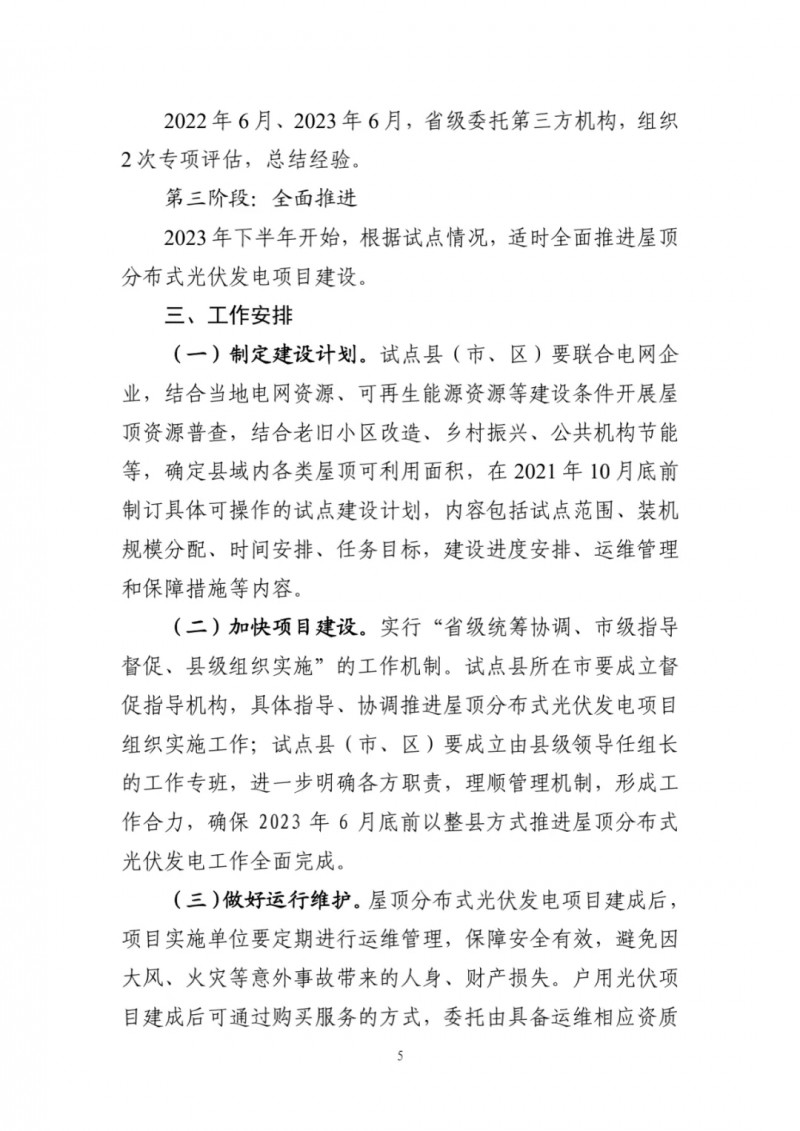 為促進(jìn)我省整縣屋頂分布式光伏項(xiàng)目建設(shè),省級將建立按月調(diào)度機(jī)制,對試點(diǎn)地區(qū)各類屋頂分布式光伏發(fā)電項(xiàng)目備案、開工、建設(shè)和并網(wǎng)情況等進(jìn)行全過程監(jiān)測,按季度公布相關(guān)信息。非試點(diǎn)縣(市、區(qū))要按既有相關(guān)政策規(guī)定繼續(xù)開展各類屋頂分布式光伏發(fā)電項(xiàng)目開發(fā)建設(shè)。2023年底前,試點(diǎn)縣(市、區(qū))各類屋頂安裝光伏發(fā)電的比例均達(dá)到國家相關(guān)要求的,我委將申請列為國家整縣(市、區(qū))屋頂分布式光伏開發(fā)示范縣。試點(diǎn)中發(fā)現(xiàn)的亮點(diǎn)和存在的突出問題,請及時(shí)報(bào)送我委。