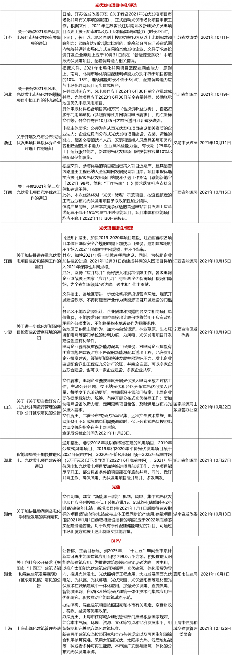 此外,10月24日中共中央 國(guó)務(wù)院發(fā)布《關(guān)于完整準(zhǔn)確全面貫徹新發(fā)展理念做好碳達(dá)峰碳中和工作的意見》。意見明確,到2030年,非化石能源消費(fèi)比重達(dá)到25%左右,風(fēng)電、太陽能發(fā)電總裝機(jī)容量達(dá)到12億千瓦以上。實(shí)施可再生能源替代行動(dòng),大力發(fā)展風(fēng)能、太陽能、生物質(zhì)能、海洋能、地?zé)崮艿?,不斷提高非化石能源消費(fèi)比重。堅(jiān)持集中式與分布式并舉,優(yōu)先推動(dòng)風(fēng)能、太陽能就地就近開發(fā)利用。同時(shí),開展建筑屋頂光伏行動(dòng)。