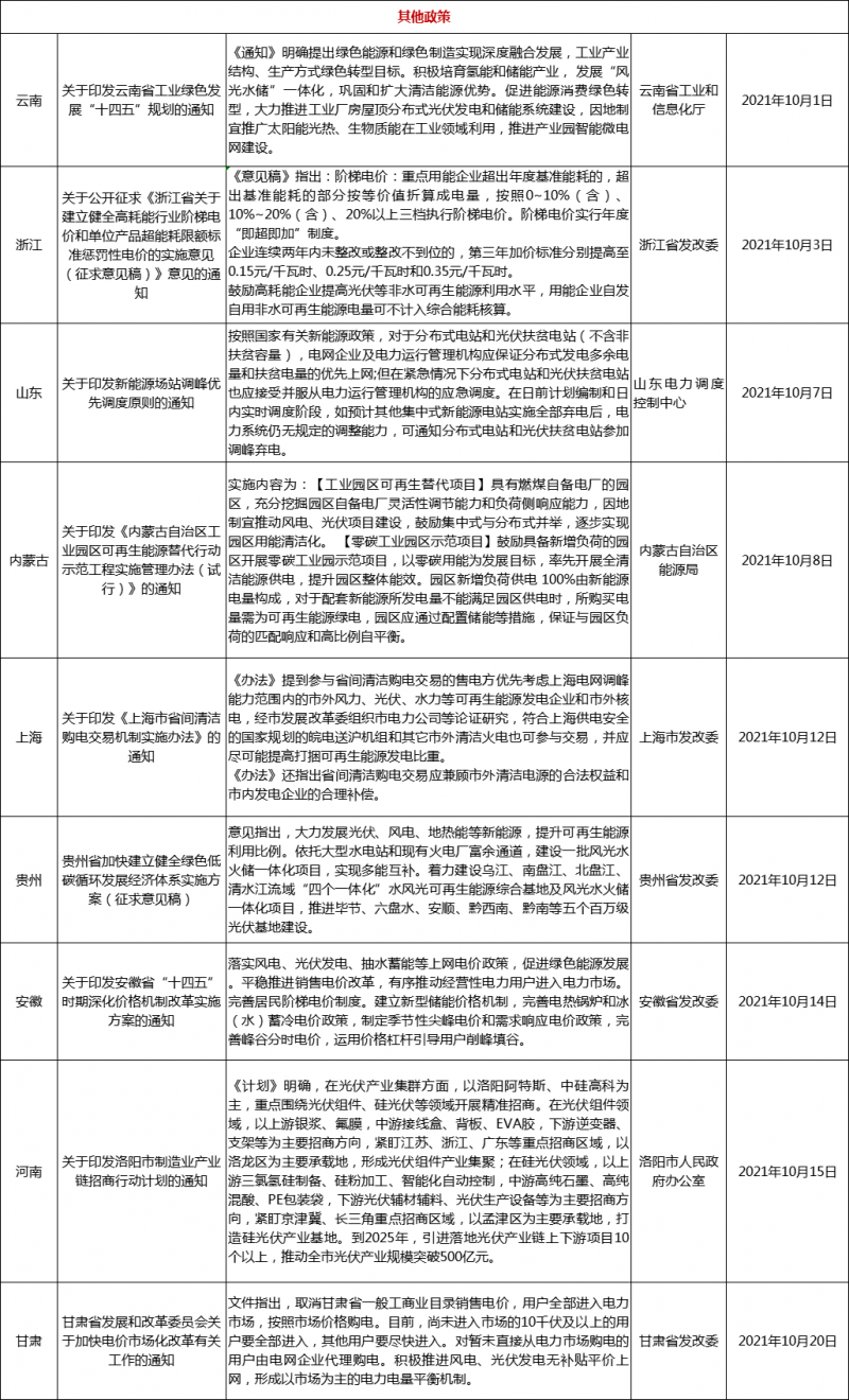 10月,備受業(yè)內(nèi)關(guān)注的政策當(dāng)屬10月26日,國(guó)務(wù)院發(fā)布《關(guān)于印發(fā)2030年前碳達(dá)峰行動(dòng)方案的通知》。