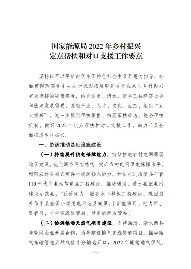 附件:國家能源局2022年鄉(xiāng)村振興定點(diǎn)幫扶和對口支援工作要點(diǎn)