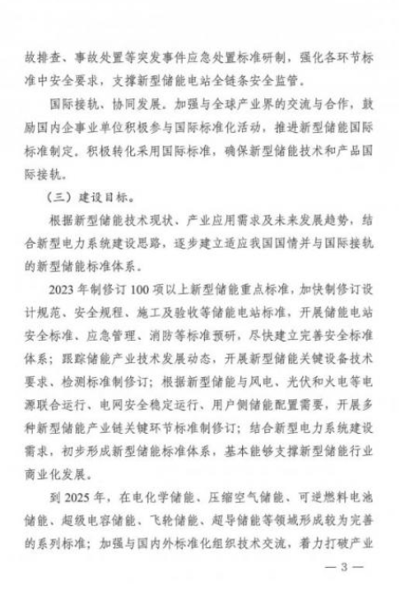 到2025年,在電化學(xué)儲(chǔ)能、壓縮空氣儲(chǔ)能、可逆燃料電池儲(chǔ)能、超級(jí)電容儲(chǔ)能、飛輪儲(chǔ)能、超導(dǎo)儲(chǔ)能等領(lǐng)域形成較為完善的系列標(biāo)準(zhǔn);加強(qiáng)與國(guó)內(nèi)外標(biāo)準(zhǔn)化組織技術(shù)交流,著力打破產(chǎn)業(yè)發(fā)展瓶頸,規(guī)范引導(dǎo)產(chǎn)業(yè)高質(zhì)量發(fā)展,保障儲(chǔ)能電站安全;加大國(guó)際標(biāo)準(zhǔn)化力度,深度參與國(guó)際電工委員會(huì)(IEC)國(guó)際標(biāo)準(zhǔn)化工作,支撐標(biāo)準(zhǔn)走出去。逐步構(gòu)建適應(yīng)技術(shù)創(chuàng)新趨勢(shì)、滿(mǎn)足產(chǎn)業(yè)發(fā)展需求、對(duì)標(biāo)國(guó)際先進(jìn)水平的新型儲(chǔ)能標(biāo)準(zhǔn)體系。