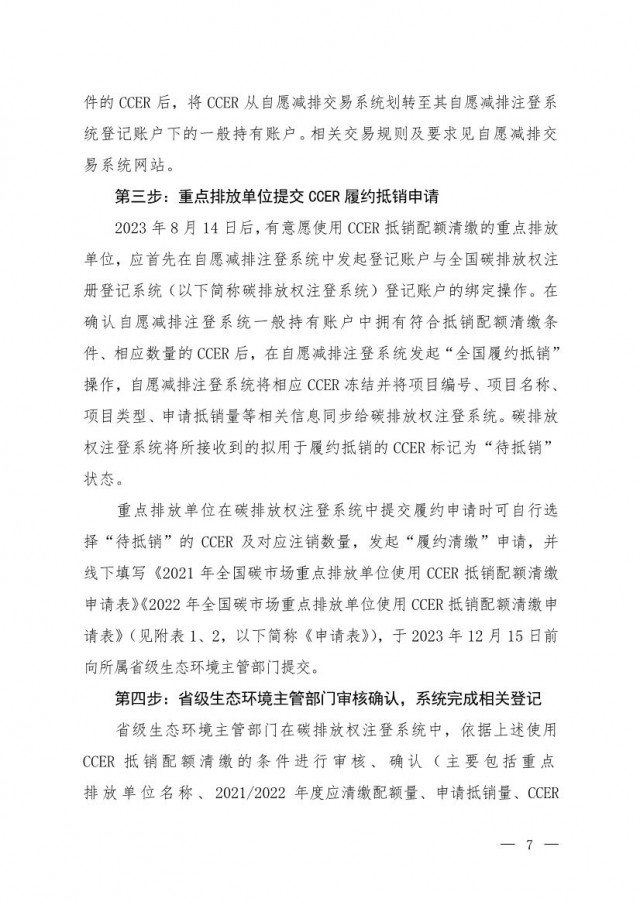 附件:2021、2022年度全國(guó)碳市場(chǎng)重點(diǎn)排放單位使用CCER抵銷(xiāo)配額清繳程序
