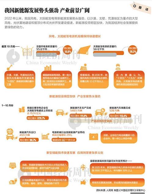 2022年以來(lái),我國(guó)風(fēng)電、太陽(yáng)能發(fā)電等新能源發(fā)展勢(shì)頭強(qiáng)勁,以沙漠、戈壁、荒漠地區(qū)為重點(diǎn)的大型風(fēng)電、光伏基地建設(shè)和屋頂分布式光伏開(kāi)發(fā)建設(shè)提速,新能源投資明顯加快,為我國(guó)經(jīng)濟(jì)社會(huì)發(fā)展提供更綠色的動(dòng)力。