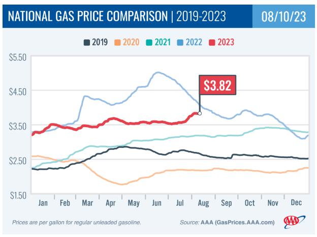 新一輪原油價(jià)格上漲已經(jīng)開(kāi)始傳導(dǎo)到燃料市場(chǎng)。根據(jù)美國(guó)汽車(chē)協(xié)會(huì)(AAA)的數(shù)據(jù),加油站價(jià)格的變化與平均價(jià)格從一個(gè)月前的每加侖3.535美元上漲近10%。