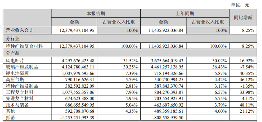 中材科技作為頭部葉片企業(yè),報(bào)告期內(nèi),合計(jì)銷售風(fēng)電葉片9.6GW,同比增長(zhǎng)27.4%(其中,中復(fù)連眾銷量2.3GW),實(shí)現(xiàn)風(fēng)電葉片銷售收入43.0億元,歸母凈利潤(rùn)3.5億元,毛利率提升至17.2%,同比提升11.3個(gè)百分點(diǎn)。