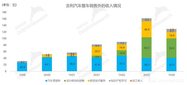 2023 年上半年,公司整車銷售業(yè)務(wù)實(shí)現(xiàn)營(yíng)收 603 億元,同比增 23%,超出市場(chǎng)預(yù)期 10.8%。在銷量(不含領(lǐng)克、睿藍(lán))同比增長(zhǎng) 12% 的但銷量數(shù)據(jù)市場(chǎng)已知的情況下,單車 ASP 超出市場(chǎng)預(yù)期 13.3%,帶動(dòng)整車銷售業(yè)務(wù)大幅度超預(yù)期。
