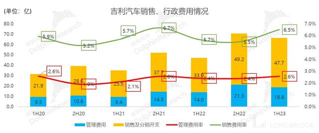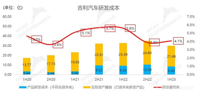 在吉利正在往電動(dòng)、智能化轉(zhuǎn)型的方向上,夾雜吉利燃油、電動(dòng)的渠道梳理及變革,經(jīng)營(yíng)費(fèi)用過于剛性,只能靠銷售釋放來稀釋投入,本季度吉利在研發(fā)和銷售等剛性費(fèi)用支出繼續(xù)加大,但符合海豚君預(yù)期。