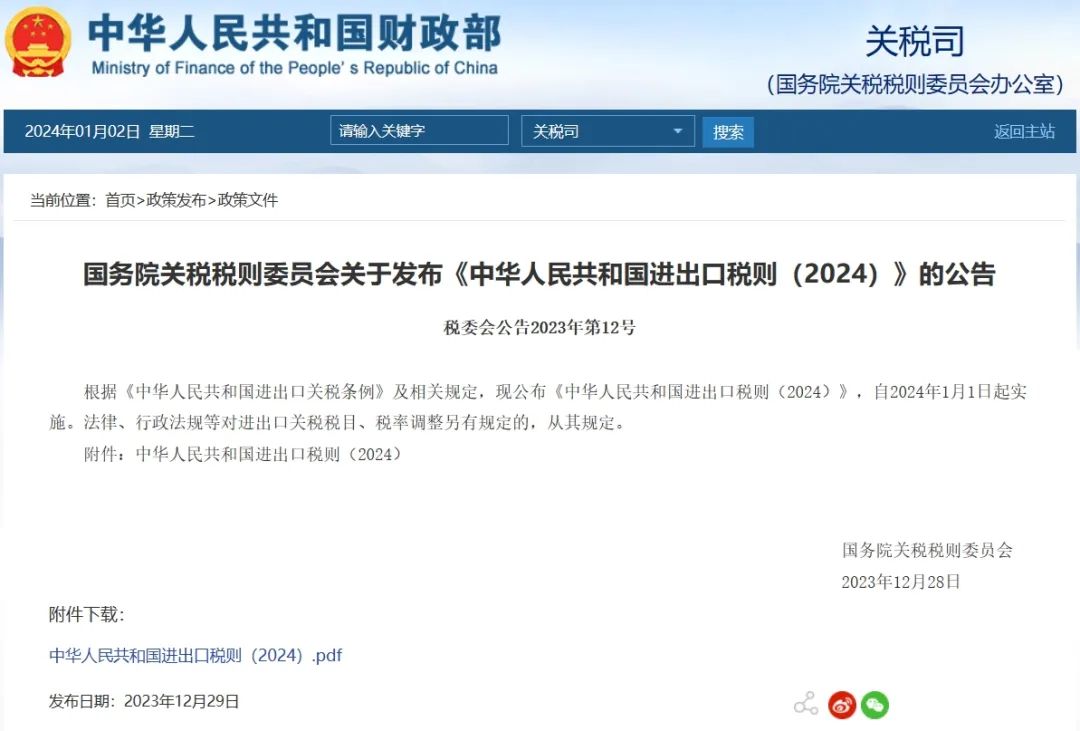 2023年12月29日,國務(wù)院關(guān)稅稅則委員會公布《中華人民共和國進(jìn)出口稅則(2024)》,自2024年1月1日起實(shí)施。相對于之前發(fā)布的公告,本次公布了進(jìn)出口產(chǎn)品具體的稅則,其中包含煤炭。