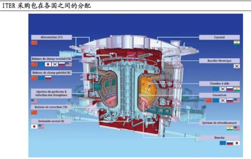 國(guó)際上,國(guó)際熱核聚變實(shí)驗(yàn)堆ITER是全球在建的規(guī)模最大的可控磁約束核聚變裝置,由歐、中、俄、韓、日、美、印等7 方30 個(gè)國(guó)家聯(lián)合參與建設(shè),其中中方實(shí)物+現(xiàn)金貢獻(xiàn)度達(dá)9%。