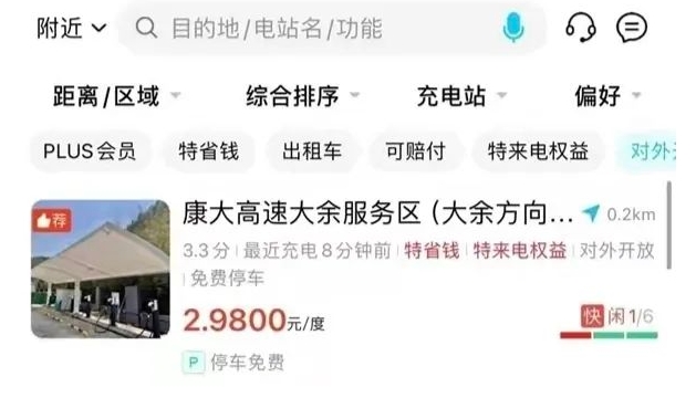 1月31日,一張“服務(wù)區(qū)充電2.98元/度”的截圖在網(wǎng)絡(luò)平臺(tái)流傳,顯示地址江西贛州康大高速大余服務(wù)區(qū)。