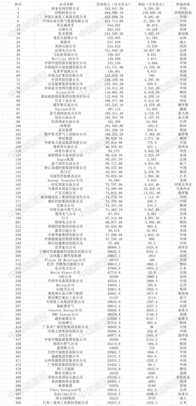 2024年《財富》世界500強(qiáng)能源企業(yè)榜單