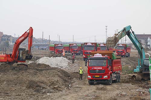 2月21日,工人們戴著口罩在工地上進(jìn)行作業(yè)、挖掘機忙著挖掘碎石和泥塊,渣土車來來往往清運著石料……繁忙的景象打破了多日沉寂,由中國安能第二工程局常州分公司承建的新孟河延伸拓浚工程常州新北區(qū)河道八標(biāo)段正式復(fù)工。