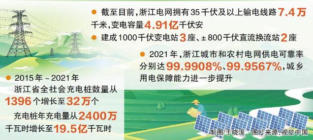 如今,“高水平均衡協(xié)調發(fā)展”已成為浙江的九張“金名片”之一。2021年,浙江農村居民收入增速快于城鎮(zhèn)居民收入增速,浙江城鄉(xiāng)居民收入比縮小到1.94∶1。國網浙江電力致力于全面推動城鄉(xiāng)電力服務均等化,計劃到2025年,通過深化政企數據全域共享,實施辦電業(yè)務省內全域通辦、公共服務行業(yè)一窗通辦、長三角跨省邊際通辦等,使農村與城市的電力服務均等化指數達到95%以上。