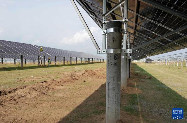 7月21日,工人在承德市豐寧滿族自治縣魚兒山鎮(zhèn)附近的一處光伏發(fā)電場(chǎng)建設(shè)工地工作。