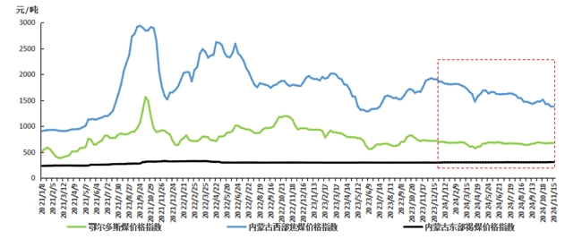 12月2日,內(nèi)蒙古煤炭價(jià)格指數(shù)最新成果在2024年企業(yè)家博鰲論壇上正式發(fā)布。監(jiān)測(cè)結(jié)果顯示,2024年,在國內(nèi)煤炭供需結(jié)構(gòu)寬松背景下,內(nèi)蒙古動(dòng)力煤年內(nèi)運(yùn)行相對(duì)穩(wěn)定,但較上年均價(jià)有所下跌,西部焦煤價(jià)格在下游需求走弱背景下震蕩回落。