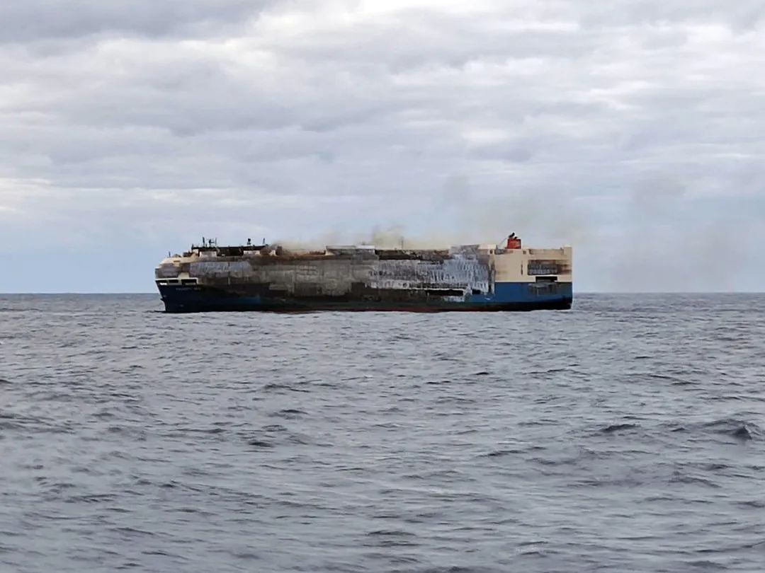 火勢(shì)持續(xù)了約一周,昨天(3月2日),據(jù)界面新聞援引彭博社報(bào)道,船舶運(yùn)營(yíng)商表示,“Felicity Ace”號(hào)貨輪已于當(dāng)?shù)貢r(shí)間周二上午九時(shí)許,在距離葡萄牙亞速爾群島海岸大約220海里處沉沒,拖船未能成功令其脫困。
