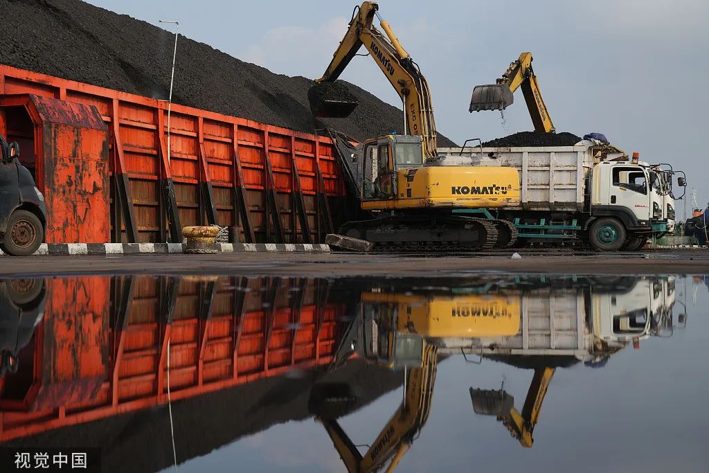 5月11日,印尼西爪哇井里汶港,工人在煤廠工作。(視覺中國(guó))