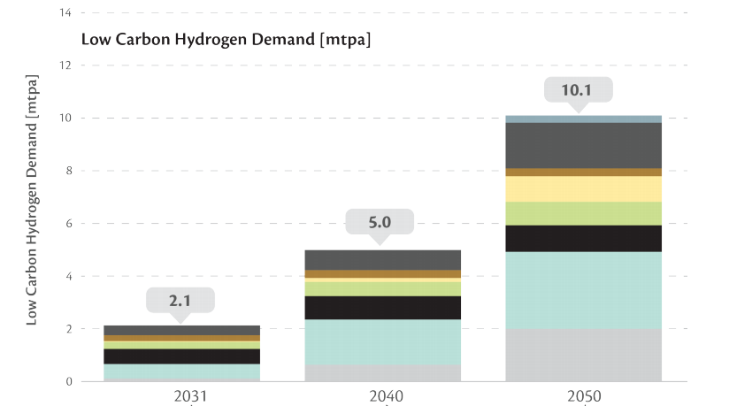圖注:2031-2050阿聯(lián)酋國(guó)內(nèi)氫能需求預(yù)測(cè)