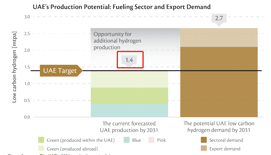 圖注:2031年阿聯(lián)酋的氫能產(chǎn)能預(yù)測(cè)和需求預(yù)測(cè)