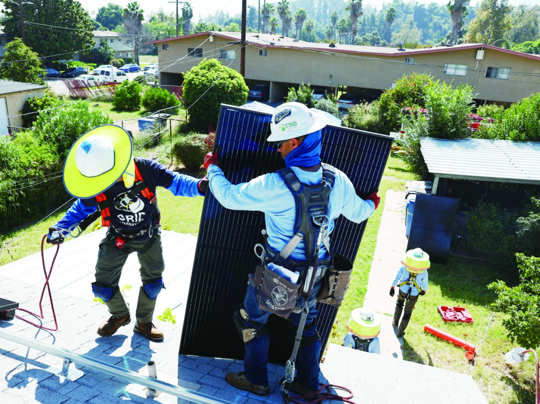 ▲美國(guó)加利福尼亞州匹茨堡市的一座住宅正在安裝光伏發(fā)電系統(tǒng)。