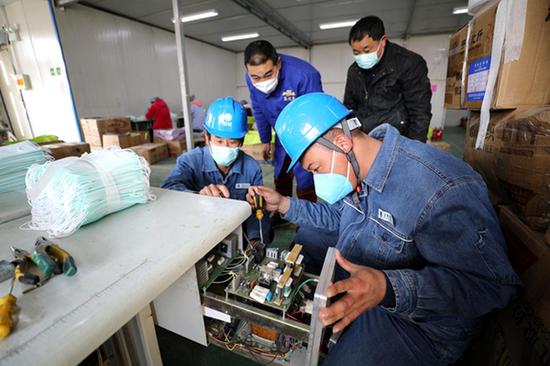 2月13日,在蕭縣丁里工業(yè)園,蕭縣供電公司副總經(jīng)理王海濤帶著營銷部負責人和供電所服務人員來到生產(chǎn)醫(yī)用防護口罩的華源家居用品公司,為該企業(yè)全面檢查用電設備、優(yōu)化保供電方案,設立常駐保供電客戶經(jīng)理,確保企業(yè)用電無憂。(馮巖 李令響)