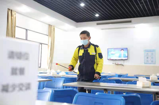 國網重慶璧山供電公司物業(yè)人員對員工食堂進行消毒殺菌