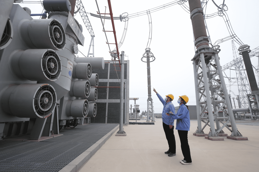 國網(wǎng)河北電力員工在1000千伏雄安變電站開展迎峰度夏設備特巡。