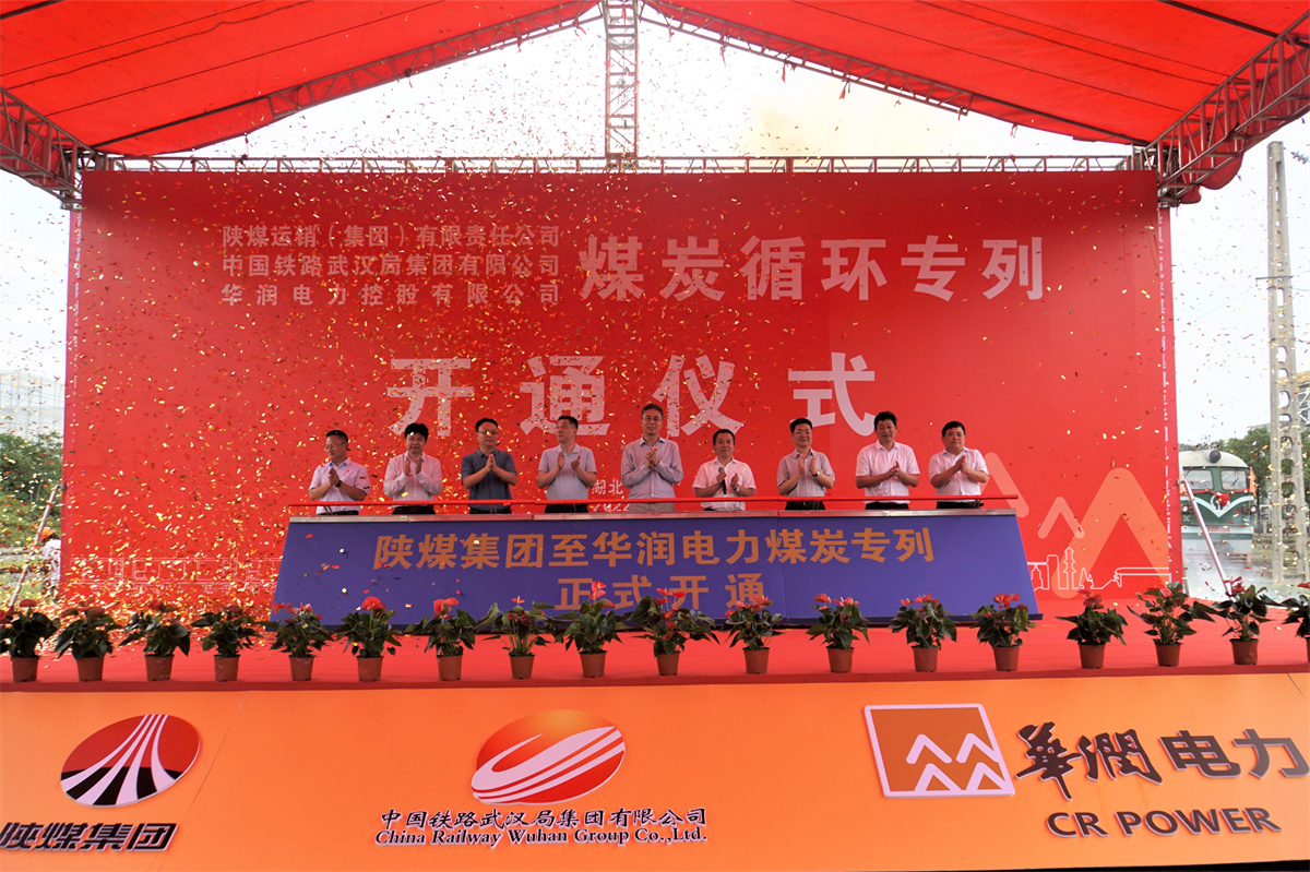 本網(wǎng)訊 近日,陜煤集團(tuán)至華潤電力煤炭循環(huán)專列開通儀式在湖北咸寧舉行。湖北省能源局總工程師伍孝峰、武漢鐵路局總調(diào)度長林敏、陜煤運銷集團(tuán)總經(jīng)理陳西平、寶雞華海工貿(mào)有限公司副總經(jīng)理孫勝川、赤壁市常務(wù)副市長陳水波、華潤電力董事局副主席張軍政等相關(guān)領(lǐng)導(dǎo)出席儀式。