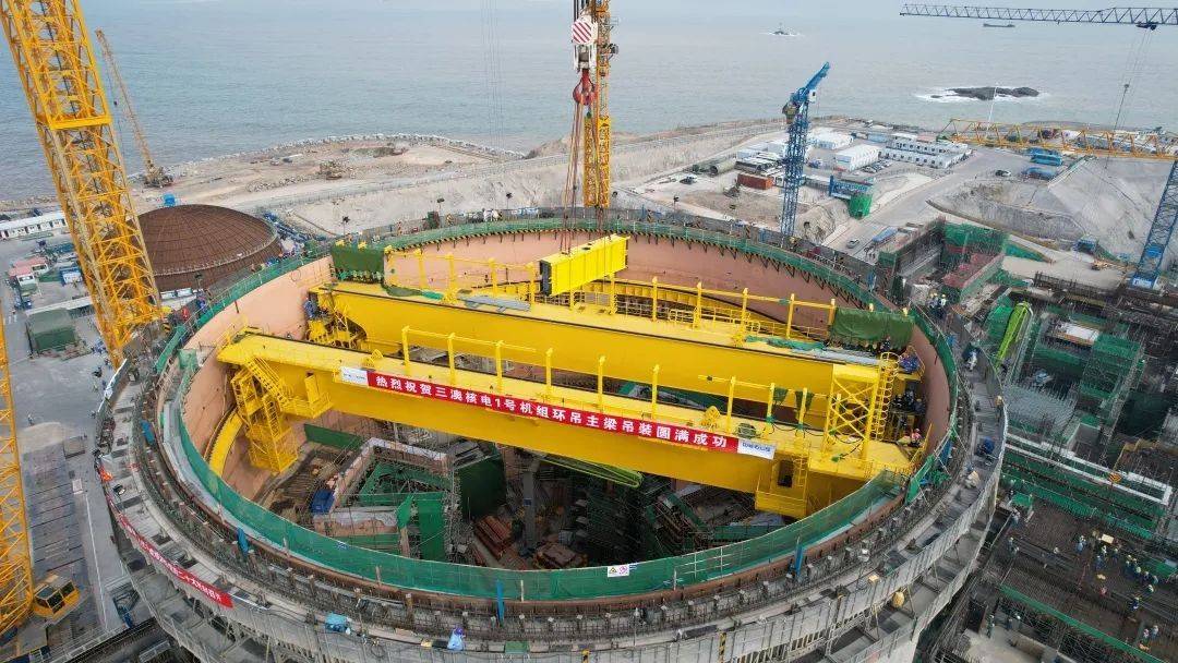 安裝后的環(huán)吊,用于反應(yīng)堆廠房建造期間和核電站正常停堆換料期間各種設(shè)備的吊運(yùn)。